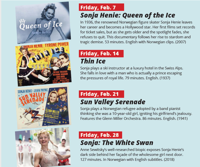The Ice Queen - A February film series that explores the life of Norwegian-born skating star and Hollywood sensation Sonja Henie. Everyone is welcome! All films are in English or include English subtitles.